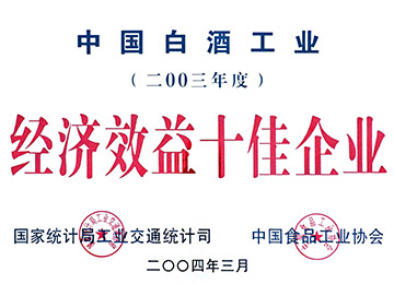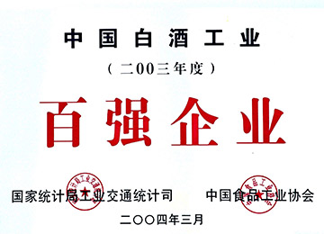 國家統計局工業交通統計司、中國食品工業協會,授予伊力特實業股份有限公司“2003年度中國白酒工業百強企業”
